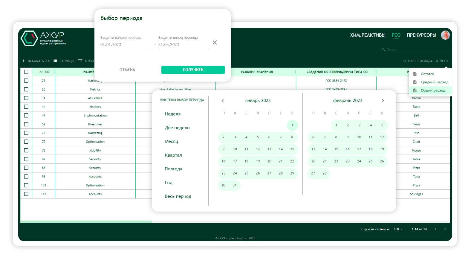 АЖУР автоматически рассчитает, какой реактив и в каком количестве нужно купить на следующий отчетный период.